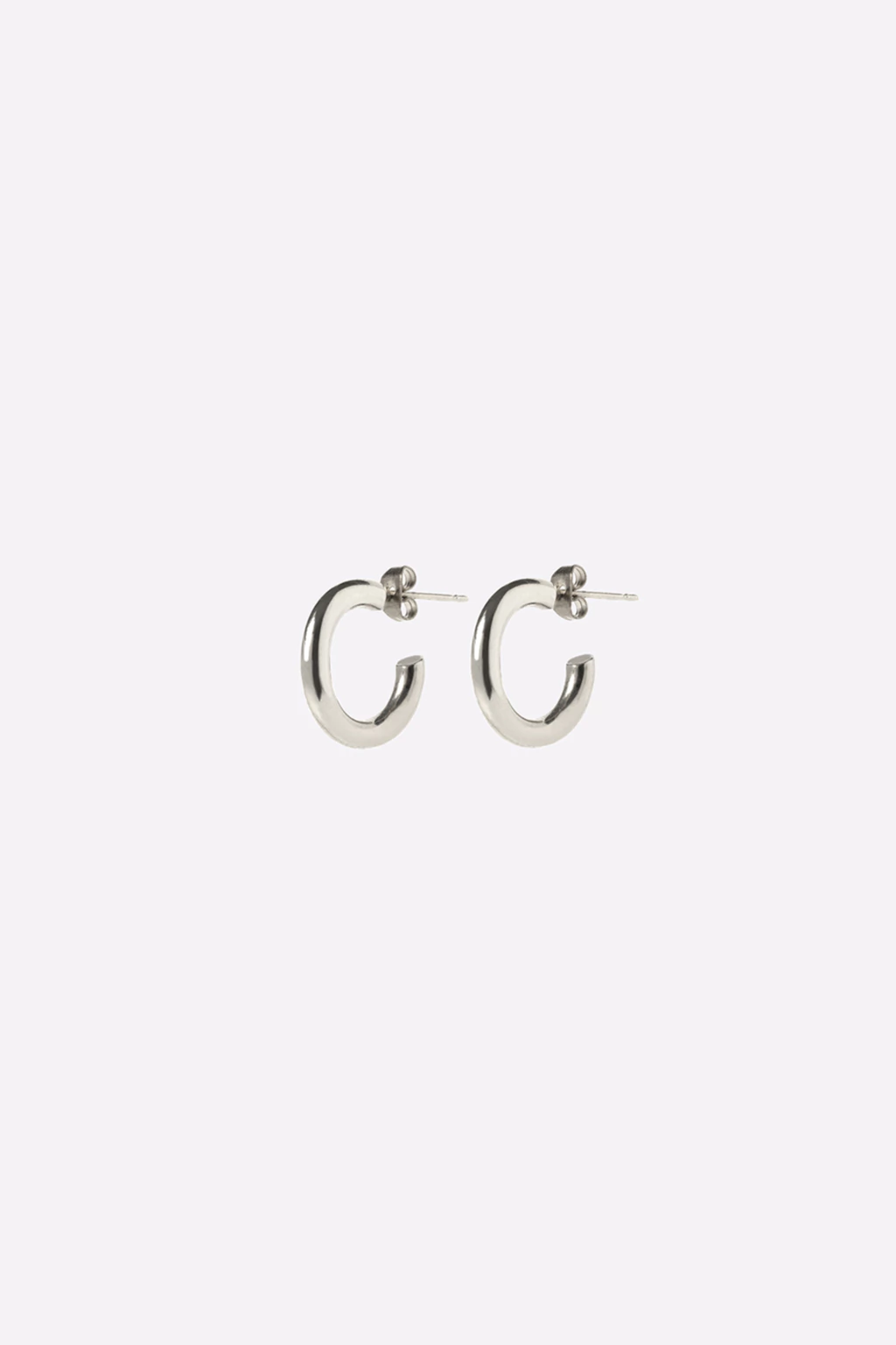 Par de argollas simples de bronce, con baño enchapado en plata.