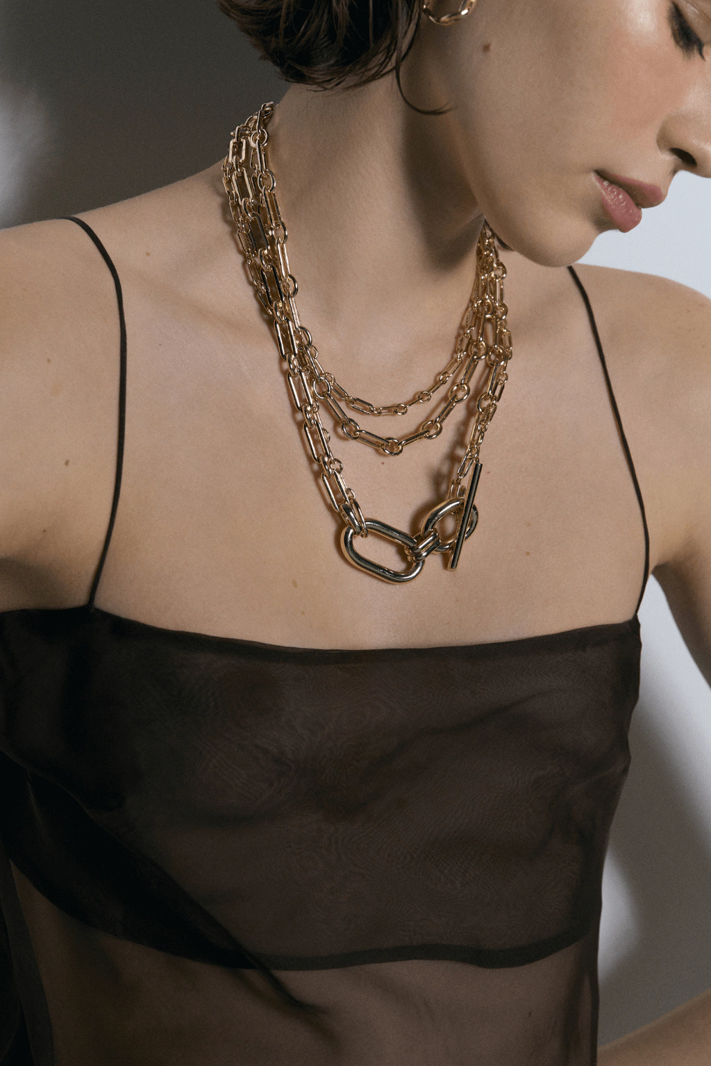 Este diseño único combina distintas cadenas de bronce con un delicado dije realizado a mano, todo enchapado en oro 24K.