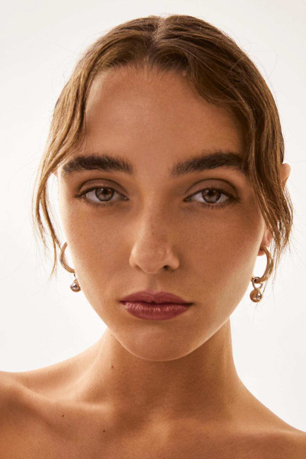 Realizados artesanalmente en bronce con un delicado enchapado de oro y detalle de dije colgante, estas argollas son el MUST HAVE de nuestra coleccion. Son super livianos, se pueden usar durante todo el dia y en aquellas ocasiones especiales.