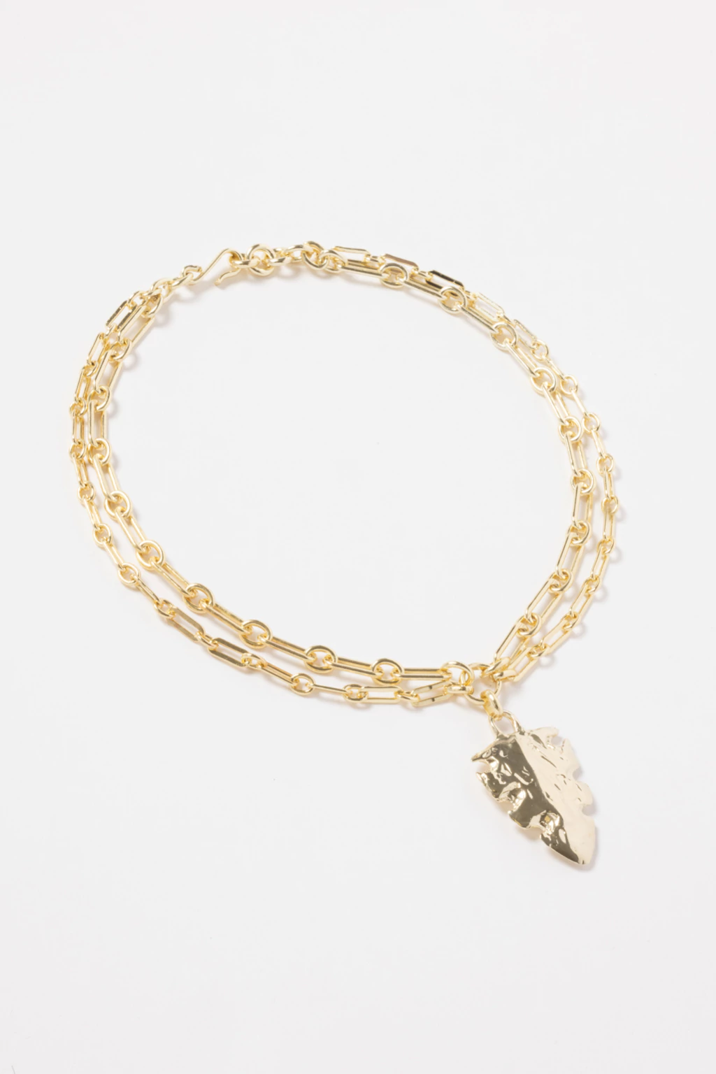Descubrí el Collar Libertad Oro, la joya imprescindible de nuestra nueva colección. Este diseño único combina diversas cadenas de bronce con un delicado dije hecho a mano, todo enchapado en oro 24K.