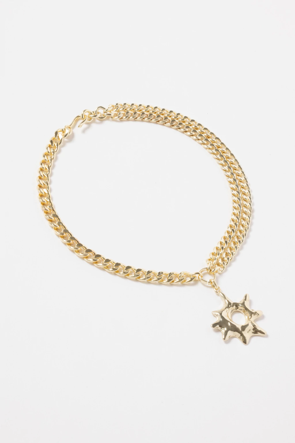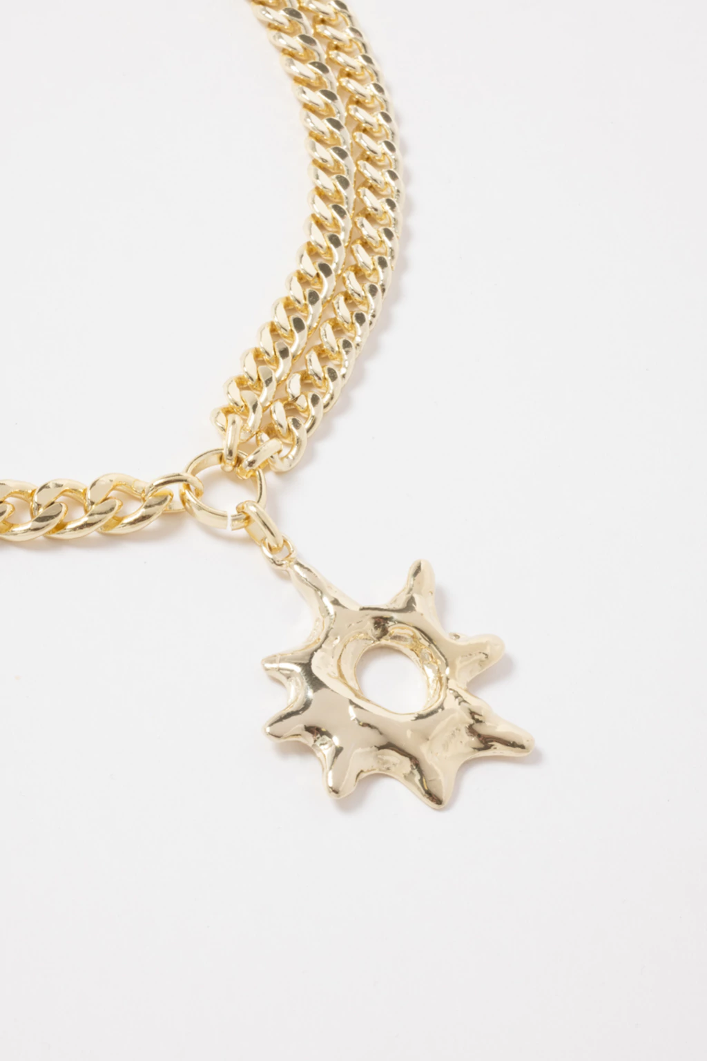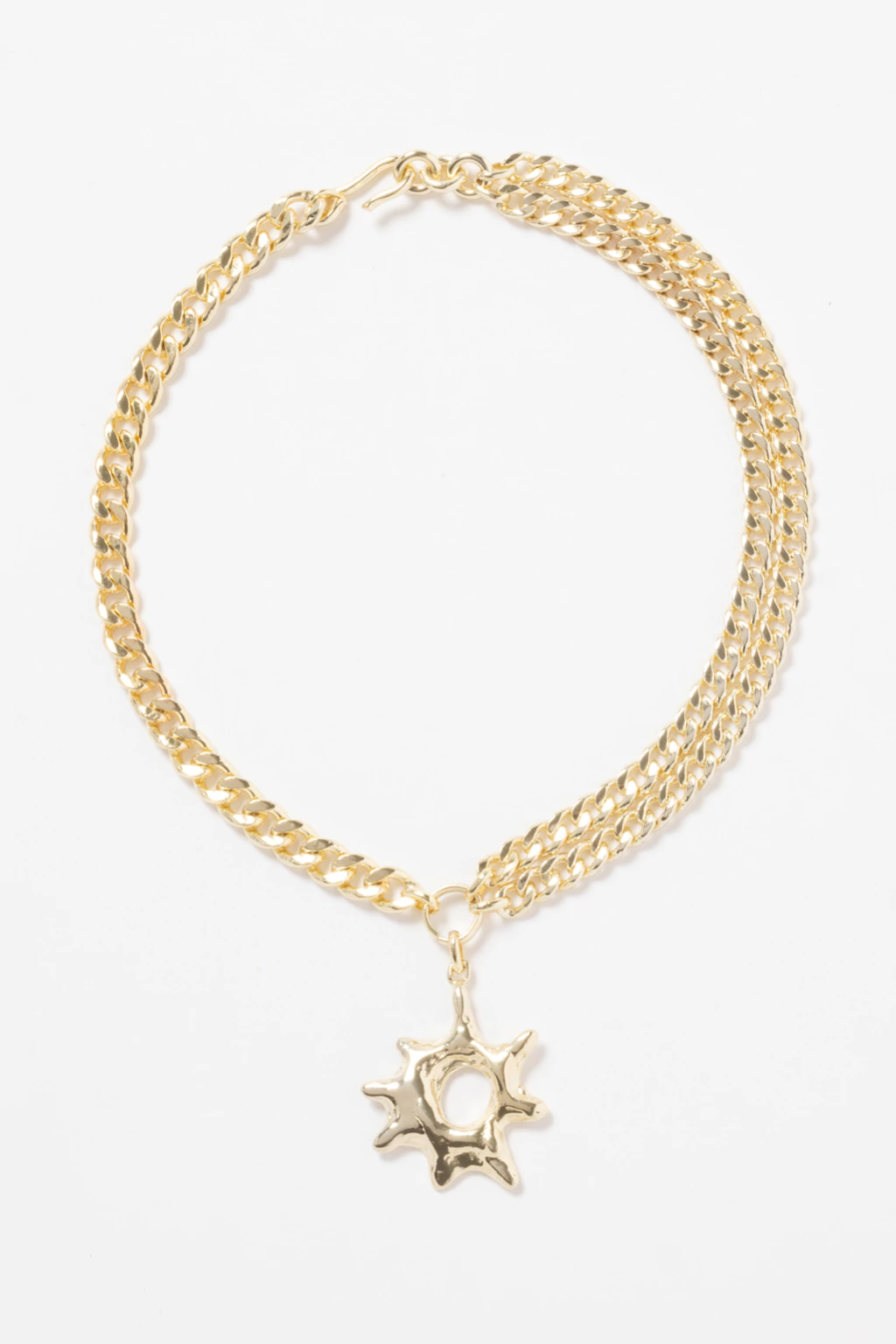 PRE ORDER COLLAR OCASO ORO: una joya que llegará la semana del 1ro de diciembre y que no vas a querer dejar de usar. Este collar es uno de los favoritos de nuestra nueva colección, elaborado íntegramente a mano con una combinación única de cadenas de bronce y un delicado dije de Sol artesanal, todo enchapado en oro 24 K.