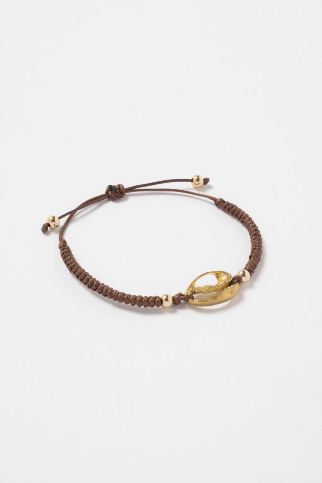 La Pulsera Mar es una pieza exclusiva de nuestra colecciòn. Realizada en hilo de forma artesanal, con detalle de dije de bronce enchapado en oro 24K.